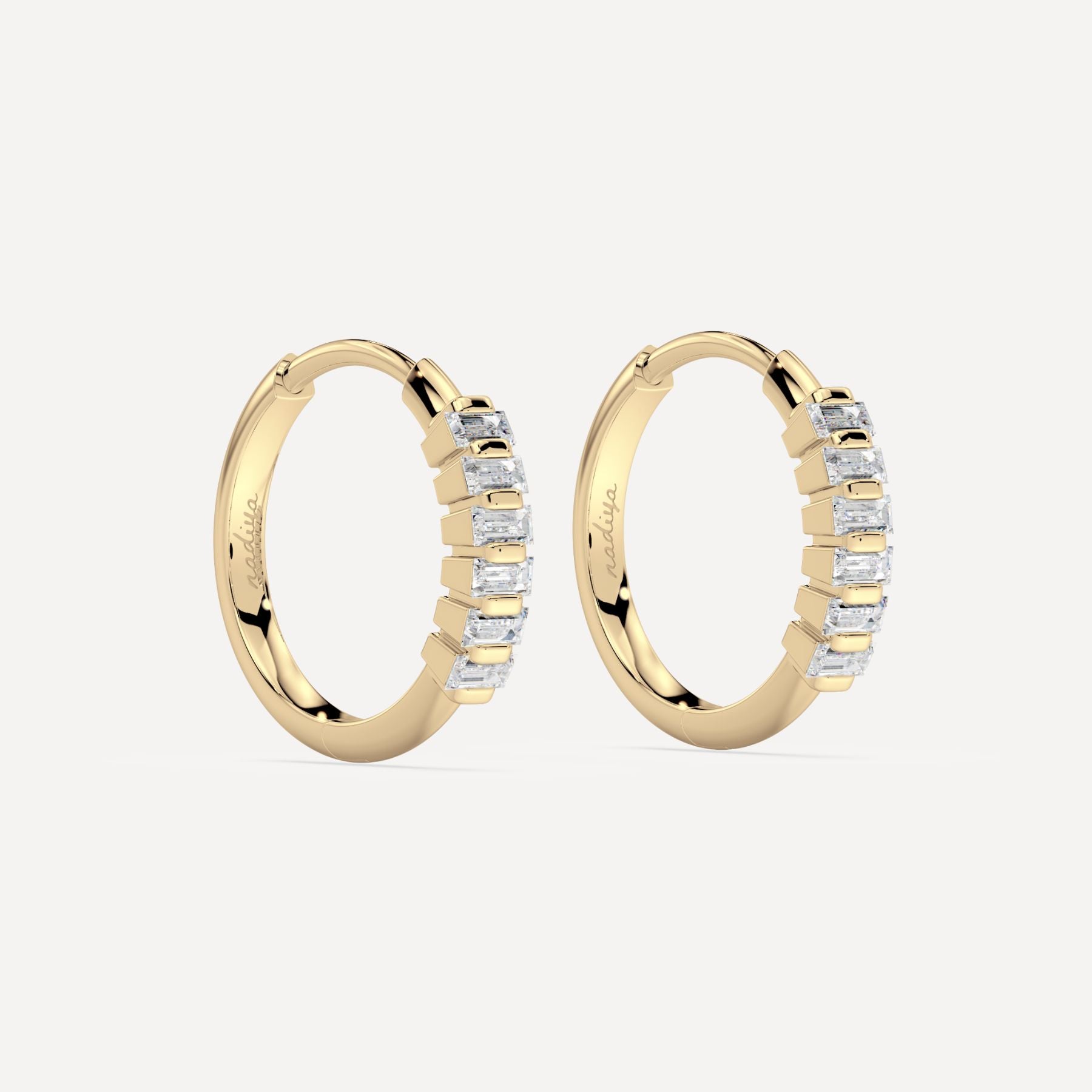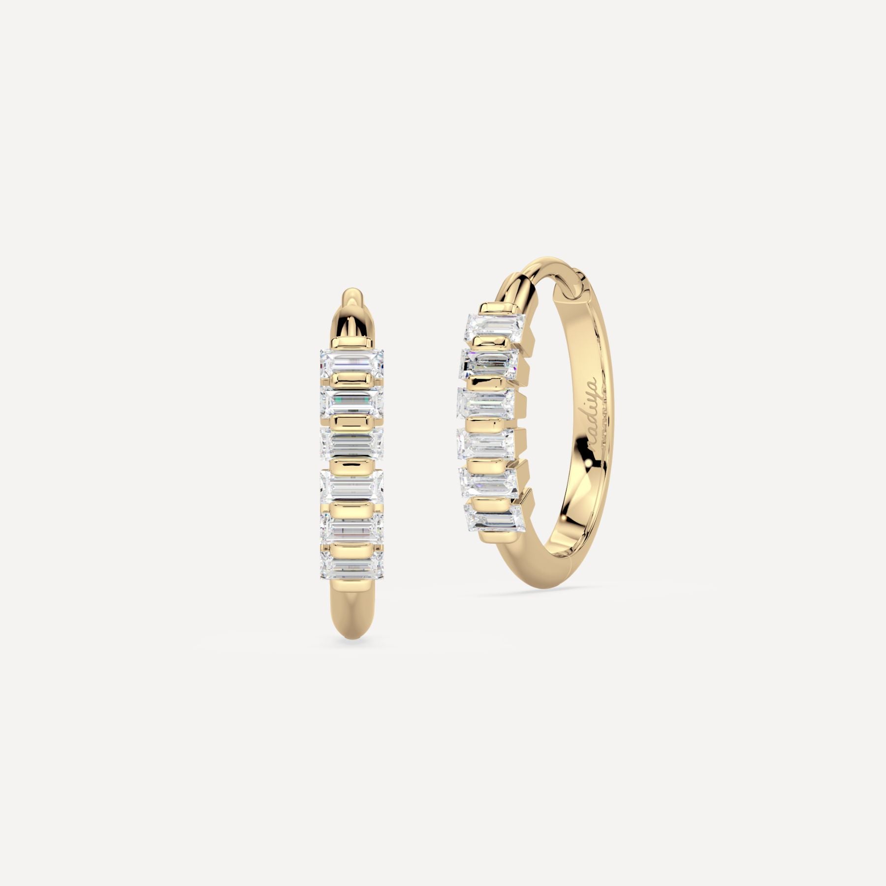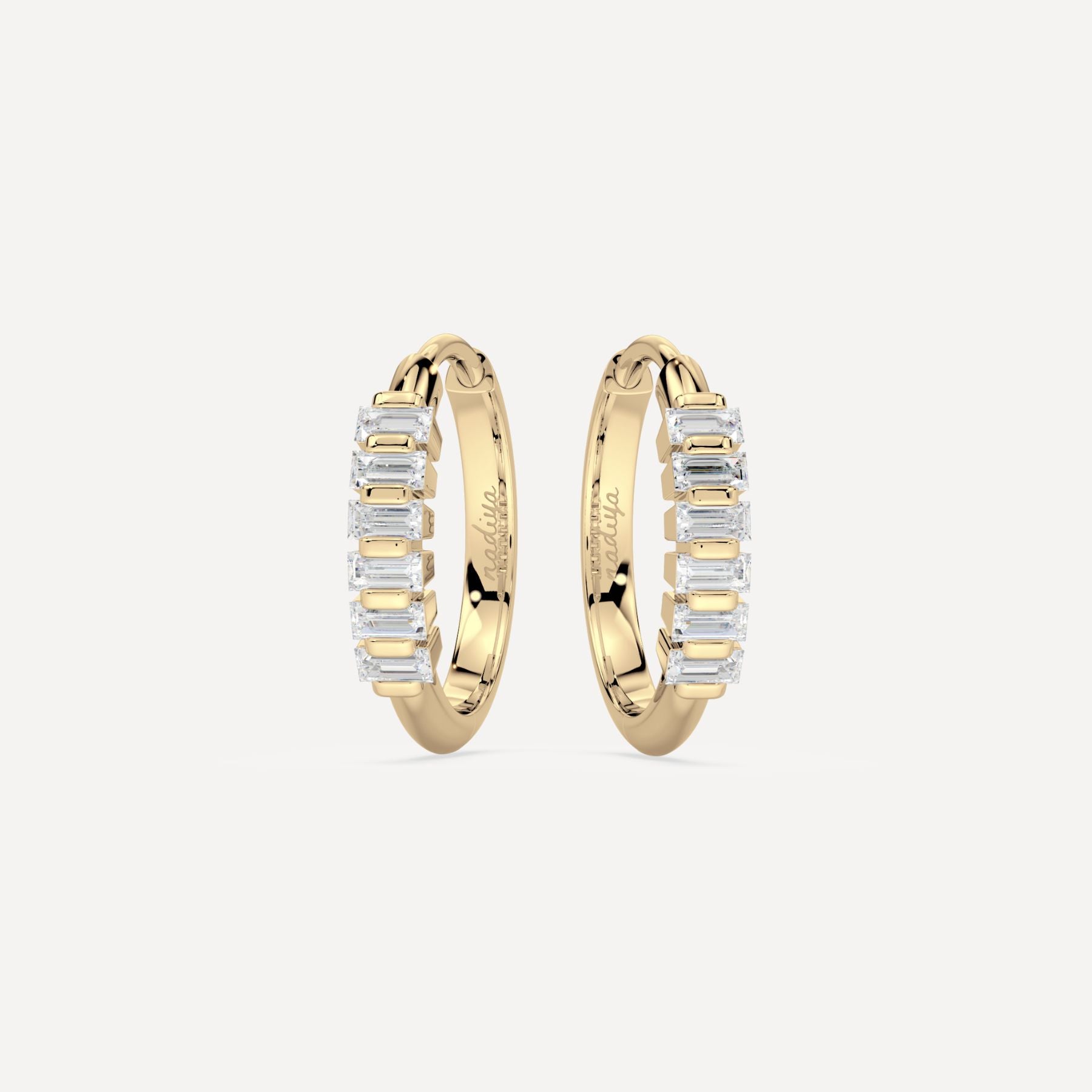 solid gold hoops with baguette diamonds by nadiya jewelry