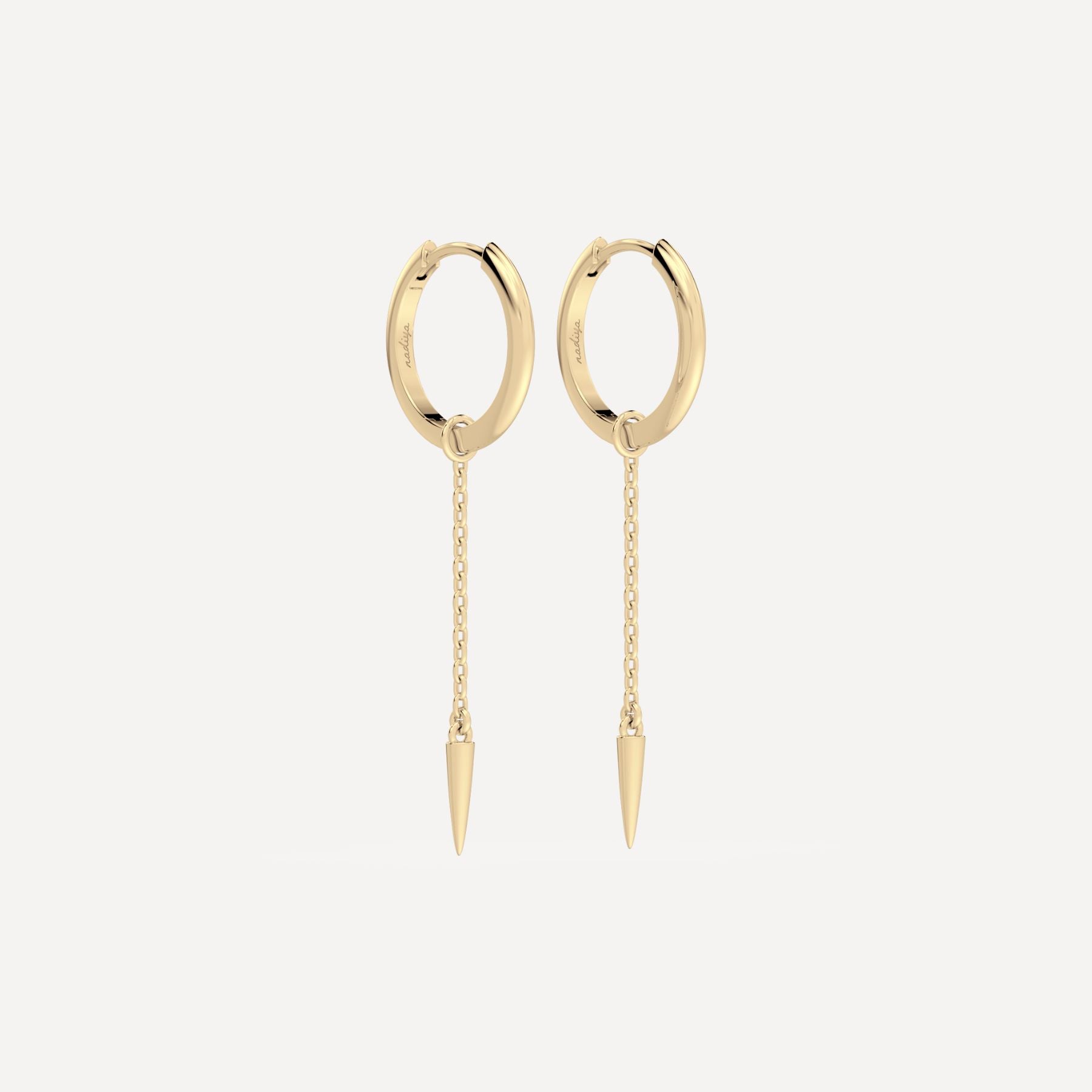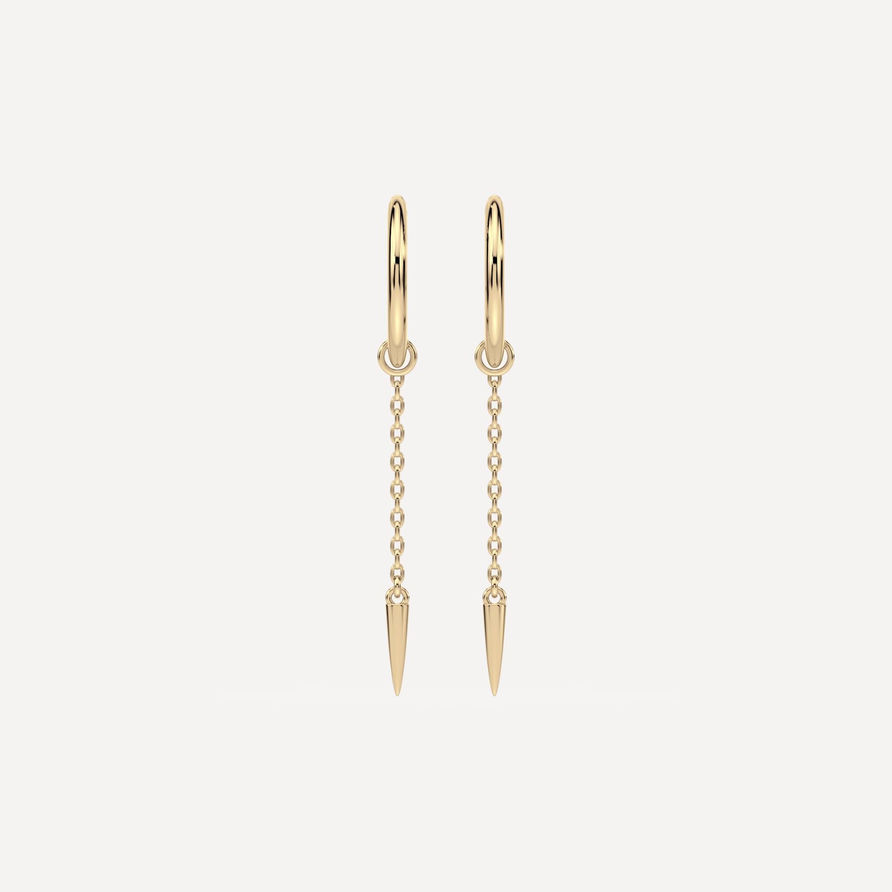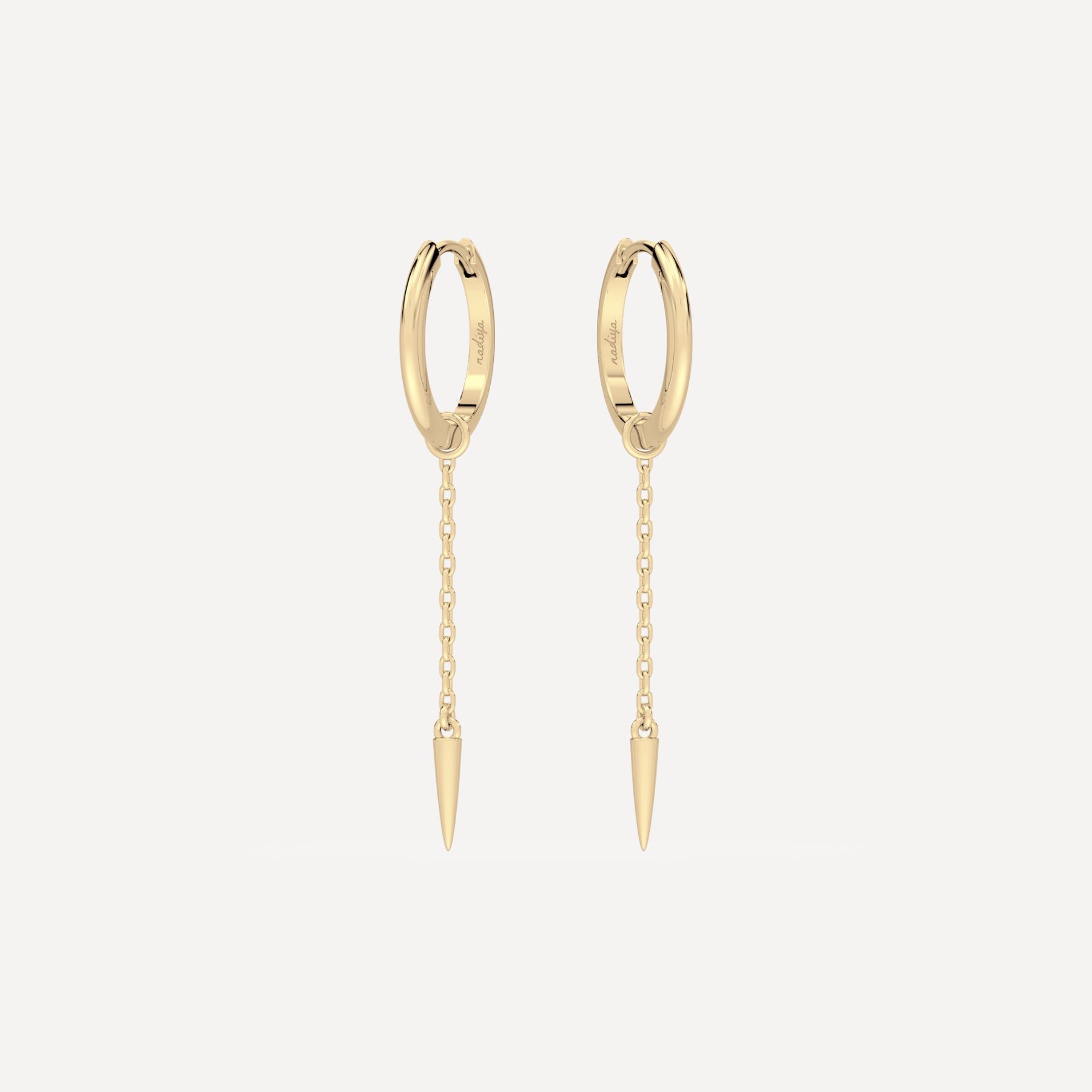 Solid gold hoop earring with solid gold chain hoop charm with cone stud by Nadiya jewelry